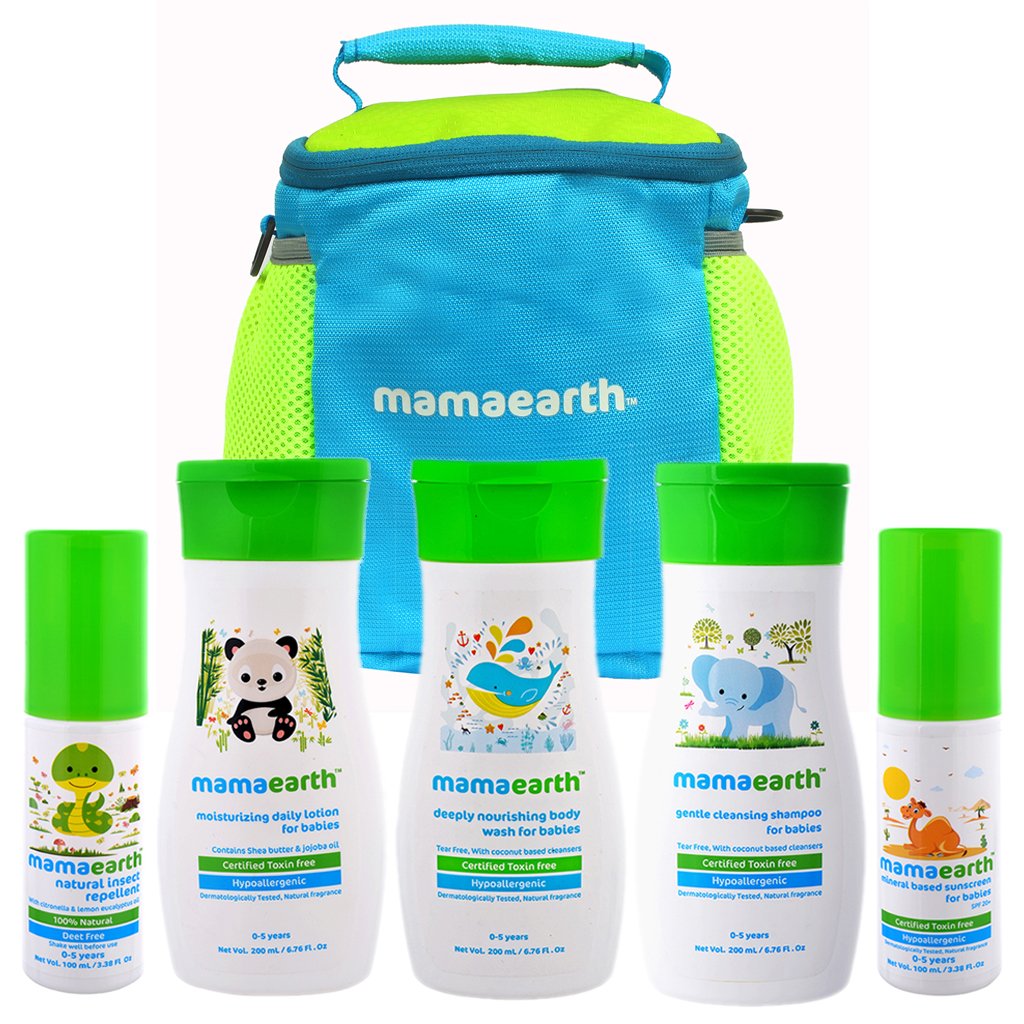- Comes with baby lotion, shampoo, body wash, mosquito repellent and sunscreen